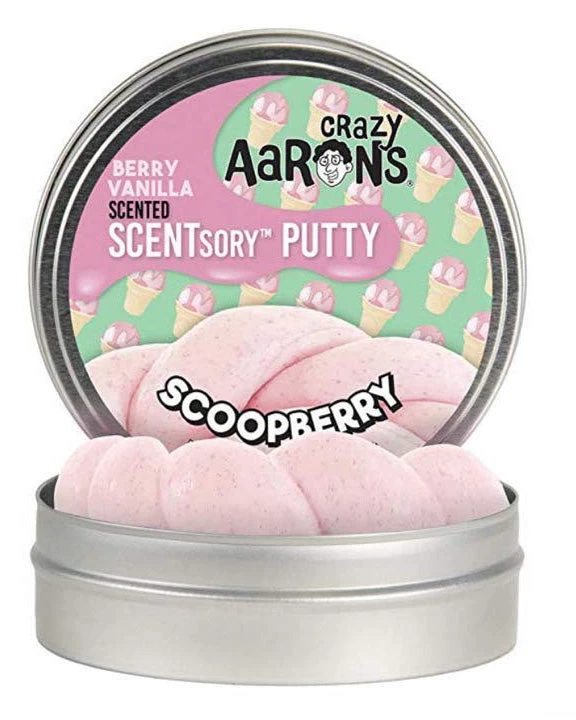 Treat yourself to something sweet! Scented with ripe strawberry and creamy vanilla, Scoopberry Scentsory Putty® is a cool way to play. It looks just like a spoonful of strawberry ice cream in your hand.Â