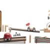 Escape from the castle’s rotary tower with this exciting Quadrilla set featuring two transparent stairways. As the marbles make their way down the rail they sound three hanging bells