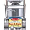 Prepare delicious meals for your family and friends! This fun wooden stove comes with one pot with lid, one frying pan, one spoon and one spatula for you to cook with. Features knobs which click cutely when turned. Store your pot and pan in the spaces behind the hob when you’re done.