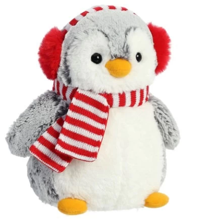 Pom Pom Penguin is bundled up this winter season with an adorable striped scarf and matching earmuffs! Pom Pom Penguin’s round, fluffy body makes for a warm cuddling experience perfect for the holidays.