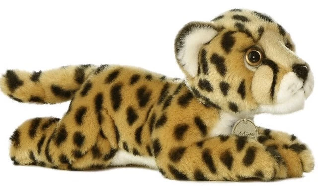 Miyoni features your favorite animals in plush form with a simultaneously realistic and cute design! This wonderful little Cheetah is all you need when you want a bit of jungle fever added to your collection. The perfect choice for cat lovers as well as anyone looking for strong animals to guard them through the night!