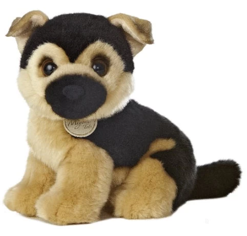 Miyoni features your favorite animals in plush form with a simultaneously realistic and cute design! This German Shepherd Puppy sits upright with a beautiful black and brown fur coat, folded ears, and big round puppy-dog eyes. A unique plush animal made from premium materials to last and be cherished for many years.