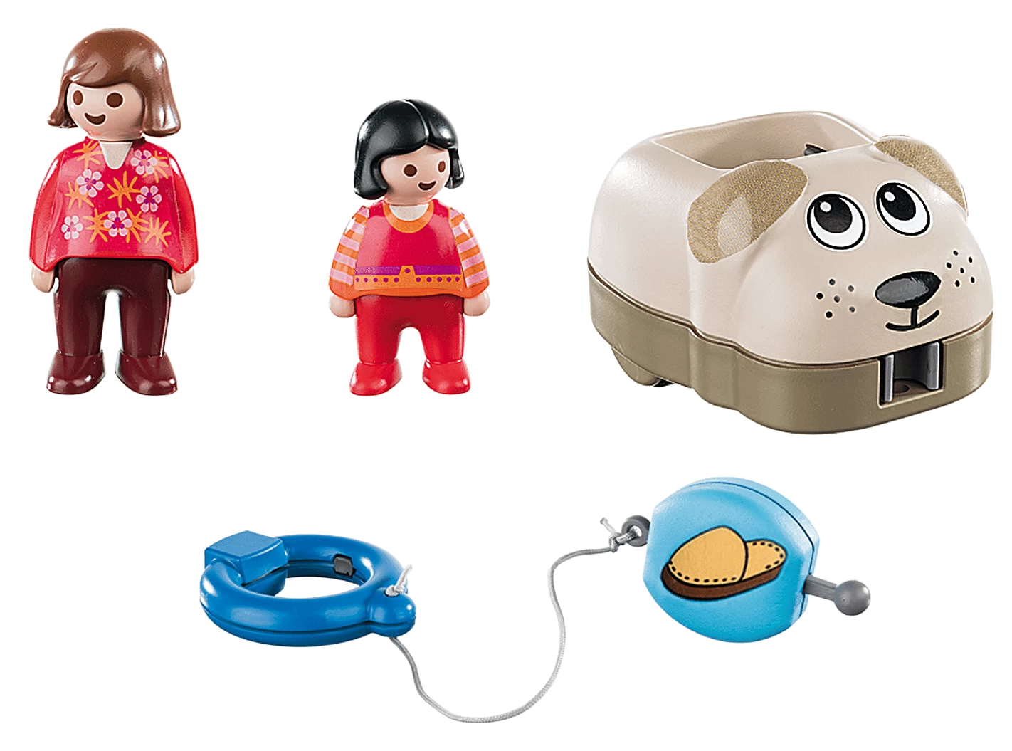 Take the dog by the leash or let the figure pull the dog along. Feed the dog with the bone or let the dog bring the slipper. Can be combined with 70405 Animal Train.