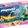With removable roof, space for up to 7 figures, light and sound. 1.5 V micro battery. Length: 27 cm.