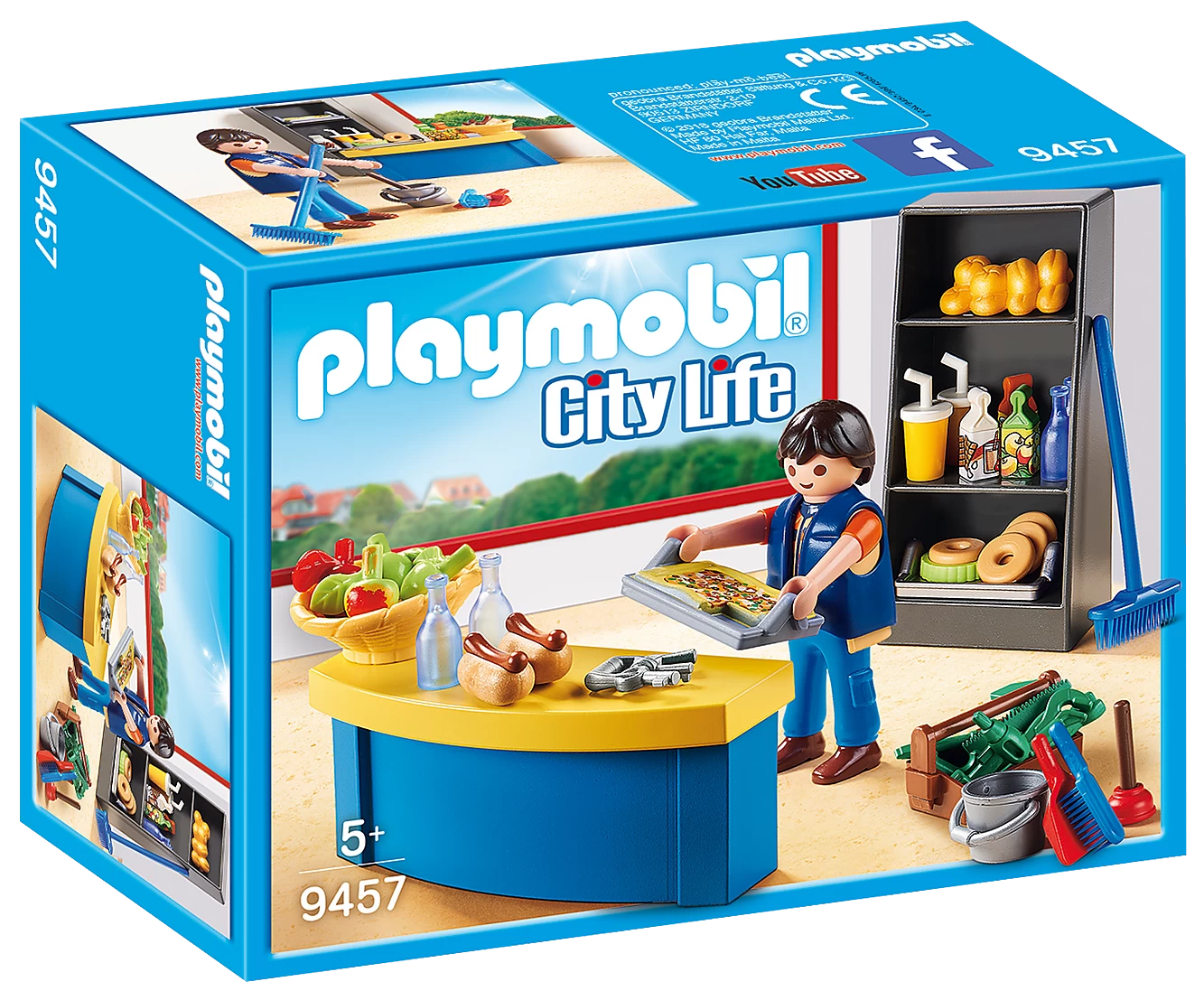 Figures: 1 man Accessories: 1 counter, 1 shelf, 1 toolbox, 1 set of tools (6 pieces), 1 bunch of keys, 1 broom, 1 hand brush, 1 garbage disposal, 1 plunger, 1 bucket, 1 basket, 2 baking trays, 4 apples, 2 drinking cups, 2 hot dogs, 4 donuts, 1 cake, 3 bottles, 3 juice bags, 1 baking pizza, 1 bread roll
