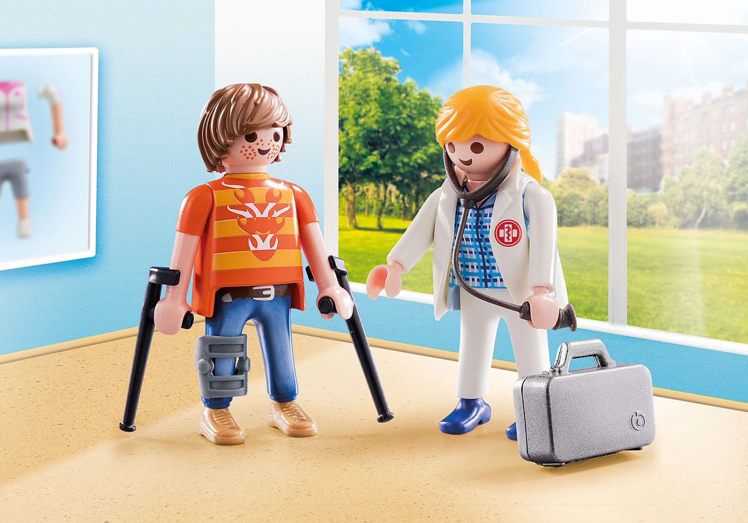Figures: 1 doctor, 1 patient Accessories: 1 splint, 2 crutches