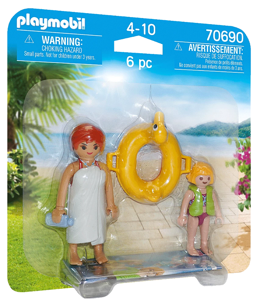 Finally bathing weather again! Mother and daughter enjoy the sunny day at the beach and look forward to swimming and splashing around. Before going out into the sun, however, sufficient sunscreen is applied of course. PLAYMOBIL DuoPacks offer double the pleasure of playing. Two figures with accessories for great play adventures.