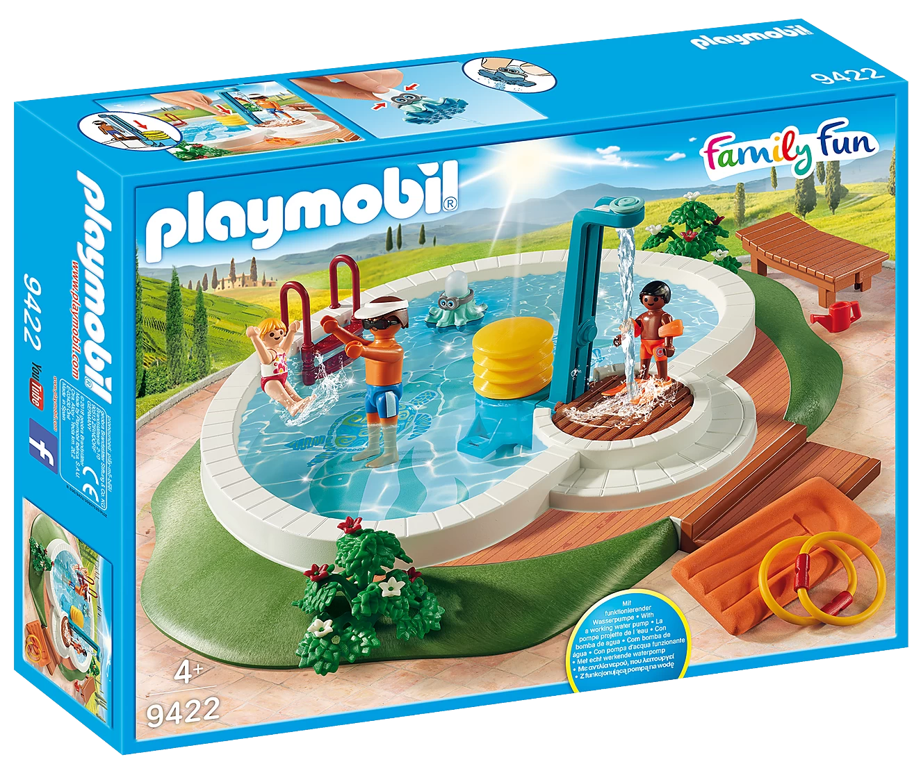 With functioning shower, floating raft, and fun squirting octopus toy.