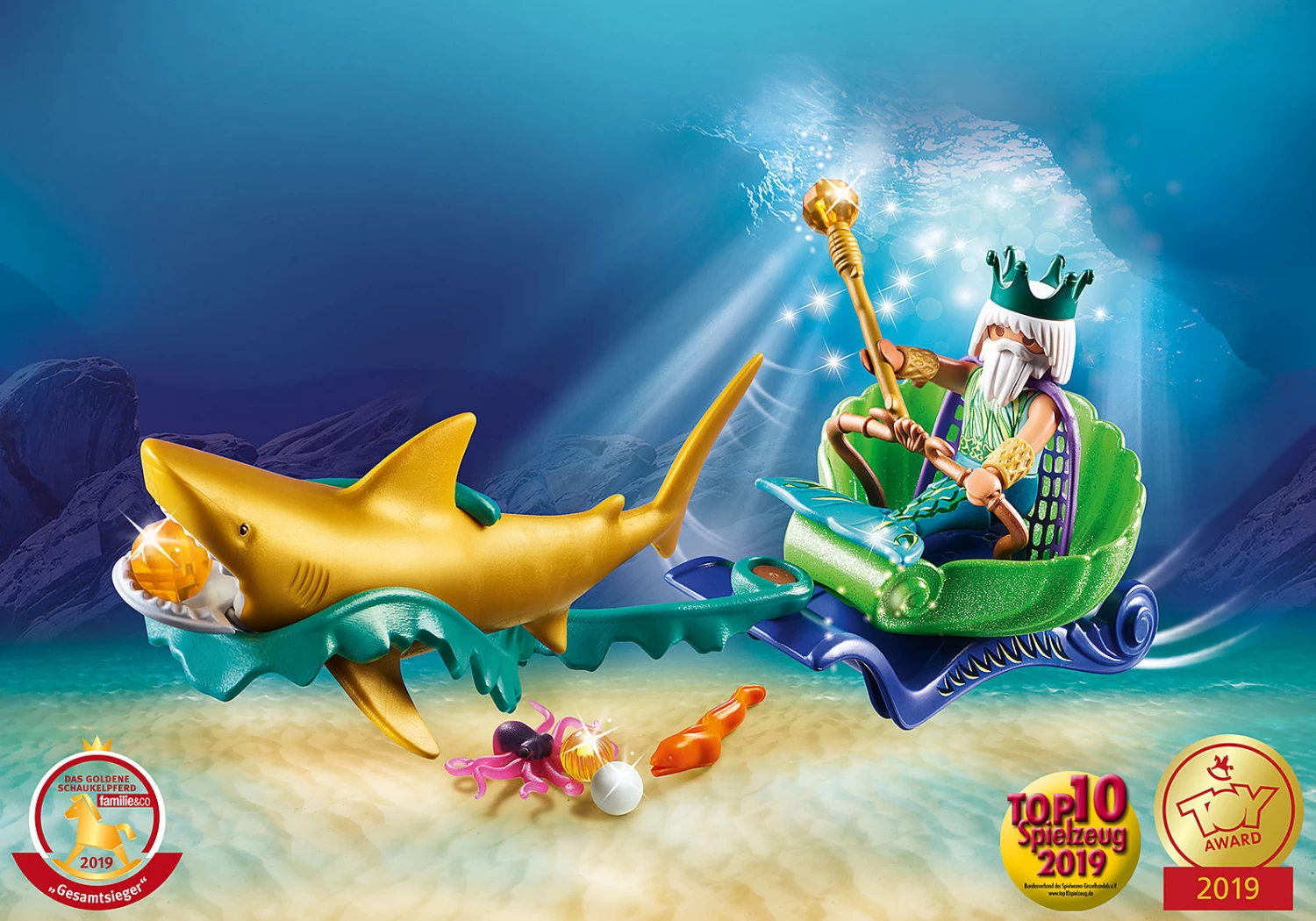Animals: 1 shark, 1 baby octopus, 1 moray