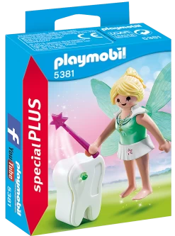 Collect all the lost teeth with the Tooth Fairy. When kids lose a tooth, they can store it in the tooth box before placing it under their pillow. Customize the tooth box with the included name tag and rhinestone. Play with this set on its own or combine it with any other PLAYMOBIL set. Set includes tooth fairy, wand, tooth box, name tag, and rhinestone. Recommended for ages four and up.Warning. Choking Hazard. Small parts. Not for children under 3 years.