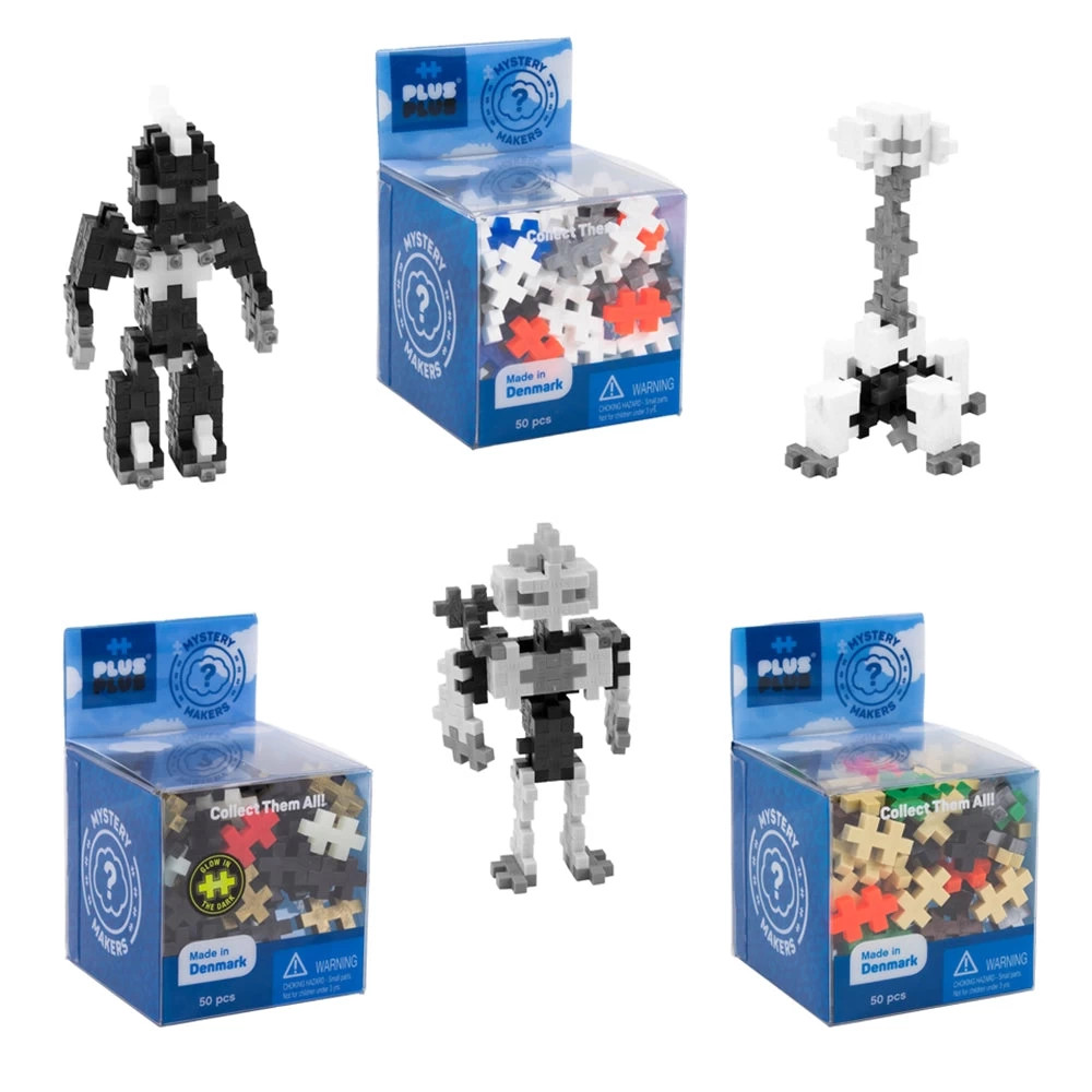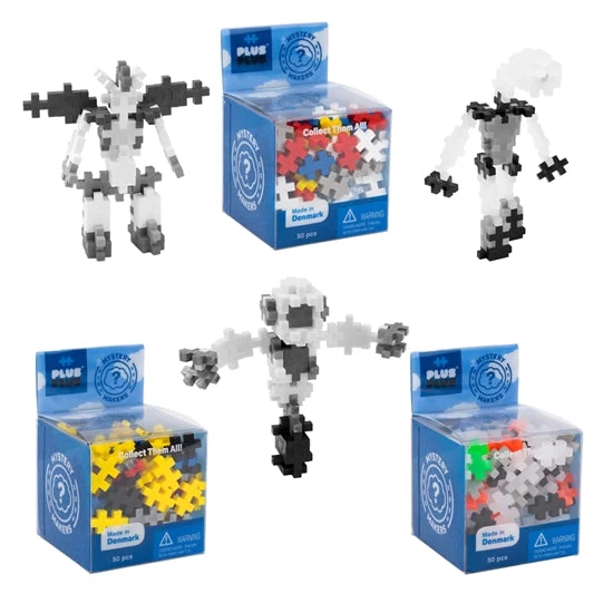 Mystery Makers include 50 Plus Plus pieces to make 1 of 6 different robot creations.Â